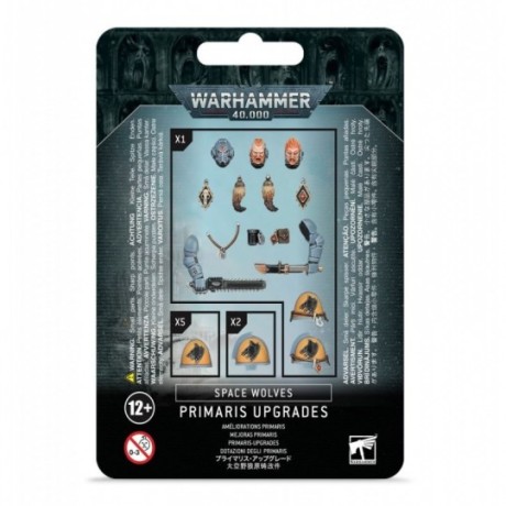 Cet assortiment de composants en plastique permet d'améliorer divers Space Marines Primaris avec de l'iconographie et des détails propres au Chapitre des Space Wolves. Il comprend 21 composants en tout: