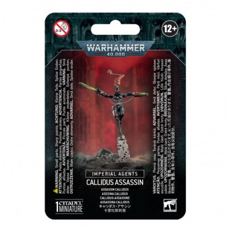 Ce kit en plastique permet d’assembler un Assassin Callidus, un Agent Impérial polymorphe déployé pour saper et éliminer les ennemis de l’Imperium. Vêtue d’une combinaison de peau synthétique, la Callidus est une tueuse acrobate armée d’une lame de phase C’tan et d’un pistolet neuro-lacérateur, ainsi que d’une sélection de lames empoisonnées accrochées à sa taille.